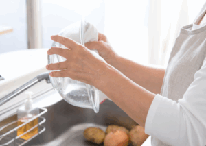 電子レンジを使った後に内部をキッチンペーパーで一拭き