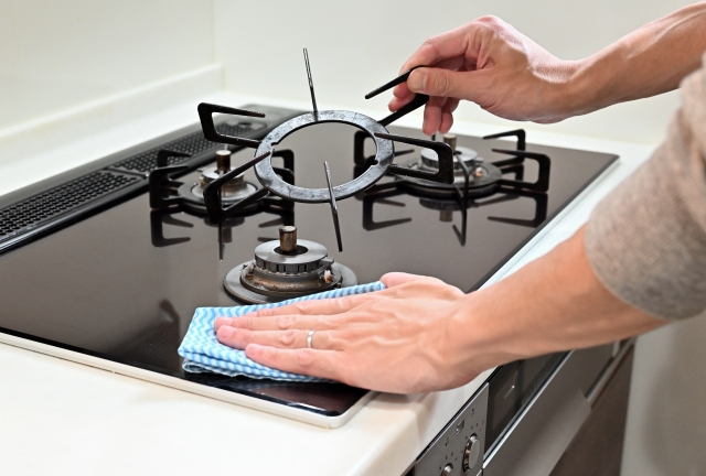 コンロまわりの掃除は、料理直後の温かいうちに行うのがポイント。