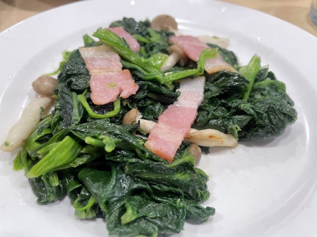 バターの香りとベーコンの塩気が、ほうれん草の甘さを包み込みます。