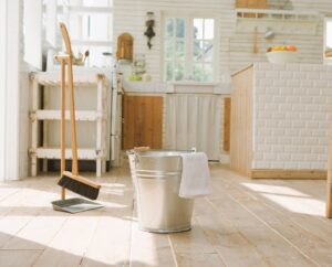 リビングキッチン玄関等 掃除機かける、朝食片付け、洗濯物干す